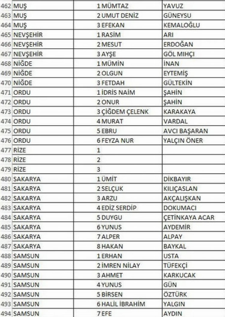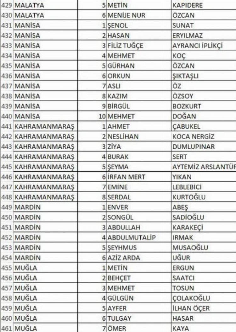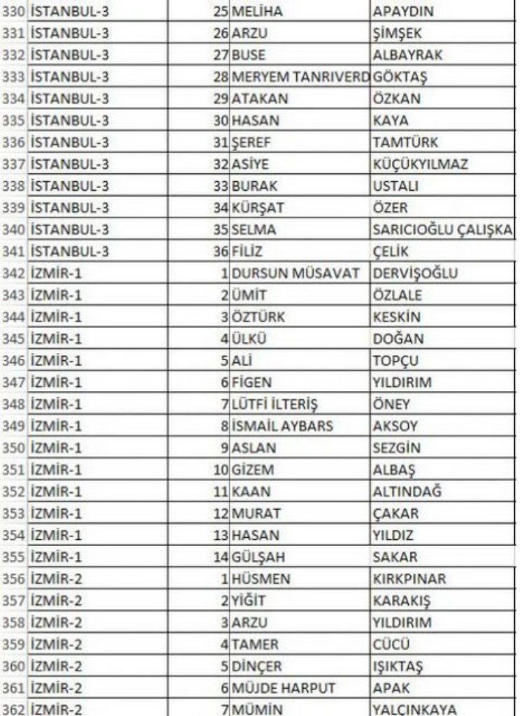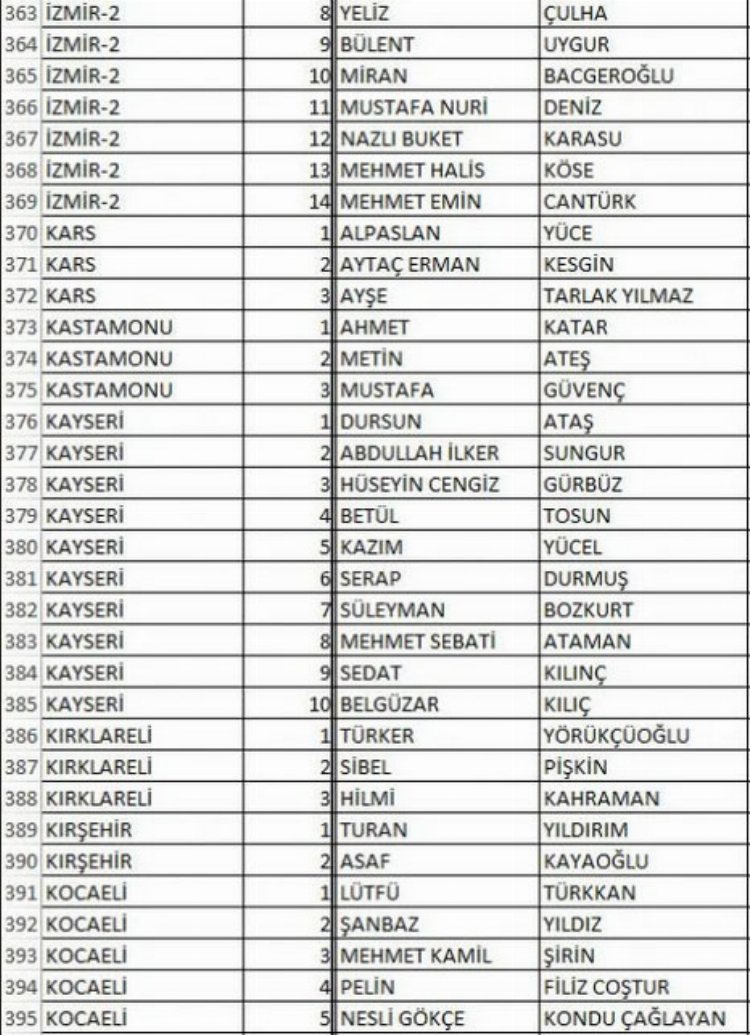 İŞTE İL İL TAM LİSTELER