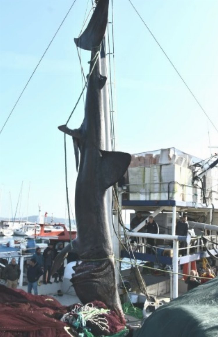 İzmir’in Urla ilçesi açıklarında bir balıkçı ağına takılan 10 metre boyunda ve 2 ton ağırlığındaki köpekbalığı İzmir Kâtip Çelebi Üniversitesi (İKÇÜ) Su Ürünleri Fakültesi’ne getirildi.