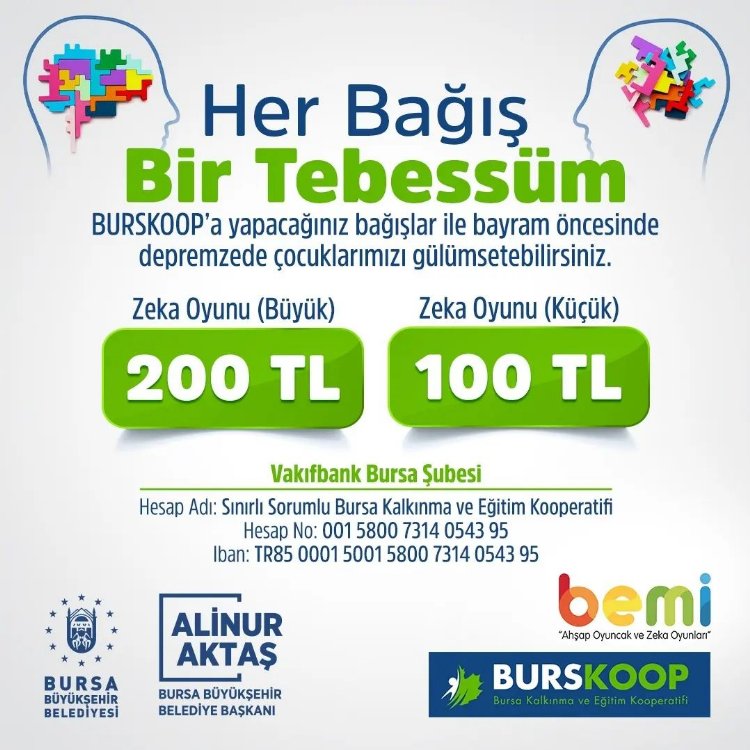 Aynı bağış kampanyası kapsamında 100 ve 200 liralık bağışlarla da afetzede çocuklara zeka oyunu hediye edilebilecek.