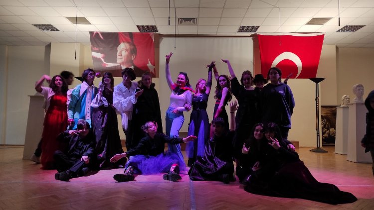27 Mart Dünya Tiyatrolar Günü, Gizem Çıracı' nın yönettiği "Shakespeare'in Cadıları" adlı oyunla Zeki Müren Güzel Sanatlar Lisesi'nde coşkuyla kutlandı.