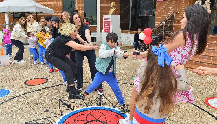 Ardından düzenlenen atölyede anneleriyle birlikte elma şekeri yapan çocuklar, daha sonra da bahçede halat çekme yarışması yaptı. Çocuklarla annelerinin sandalye kapma yarışması ise küçükler kadar büyükleri de güldürdü.