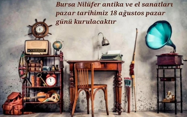 Bursa Antikacılar ve Antika Sevenler Derneği tarafından kurulacak olan antika pazarında yaklaşık 18 yıllık antika eserler ve el sanatları satışa sunulacak.