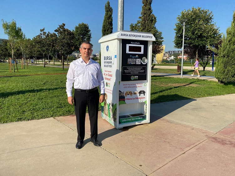 Bursa Büyükşehir Belediyesi Veteriner Hizmetleri Şube Müdürü Semih Öz, sokak hayvanlarının beslenmesi için yıllık 60 ton mama kullandıklarını belirtti. 17 ilçede 168 ayrı noktada besleme yapıldığını söyleyen Öz, mamamatik otomat projesiyle hem temiz çevre bilincinin oluşturulmasını hem de can dostların beslenmesini amaçladıklarını ifade etti. Öz, “Yenilikçi uygulamalar kapsamında plastik atıkların mamaya dönüşmesi için Botanik Park, Merinos Park ve Hüdavendigar Parkı’nda mamamatik uygulamasını başlattık. Can dostlarımızın sıcak havalarda susuz ve aç kalmaması için vatandaşlarımızdan projemize katılmalarını bekliyoruz. Çocuklarımıza da bu projeyi uygulamalı göstererek çevre bilincini aşılayabiliriz. Otomatlarla sokak hayvanları ile hayvanseverler arasında bir köprü de oluşturuluyor” dedi.