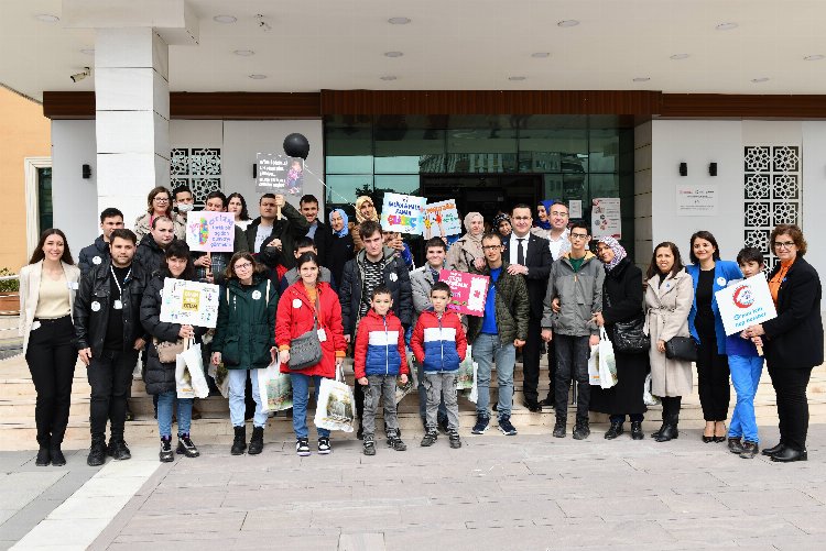 Bursa'nın Mustafakemalpaşa ilçesinden otizme dikkat çekmek için gökyüzüne yüzlerce balon salındı.