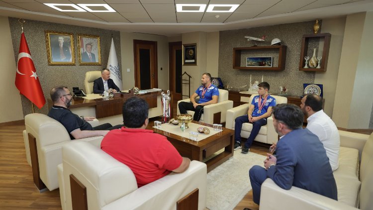 KOCAELİ (İGFA) - Kocaeli Büyükşehir Belediye Başkanı Tahir Büyükakın, 662. Tarihi Kırkpınar Yağlı Güreşleri’nde başarı elde eden Kağıtspor’un başarılı pehlivanlarını makamında ağırladı.