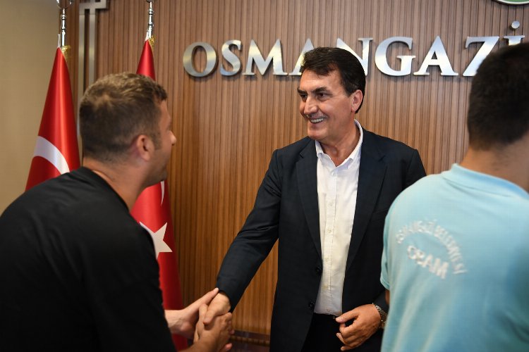 Bursa'da Osmangazi Belediye Başkanı Mustafa Dündar, Kurban Bayramı öncesi son iş gününde belediye personeli ile tek tek bayramlaştı.