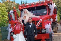 Düzce’de hafriyat kamyonu gelin arabası oldu