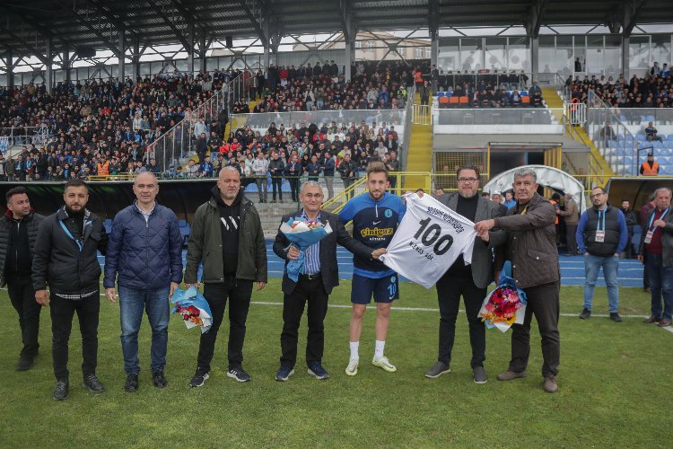 Maç öncesinde Belediye Kütahyaspor formasını 100. kez giyen Muhammet Enes Gök’e Belediye Başkanı Prof. Dr. Alim Işık, 100 numaralı formamızı takdim ederek tebriklerini iletti.