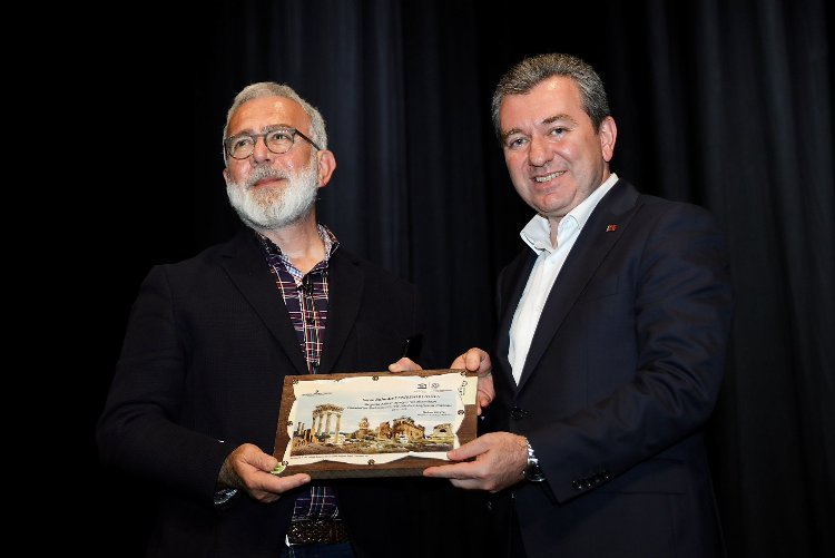 Konferans sonunda Belediye Başkanı Hakan Koştu, sanatçı Bahadır Yenişehirlioğlu'na teşekkür ederek, Parşömen'den yapılan plaket verdi.