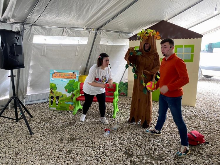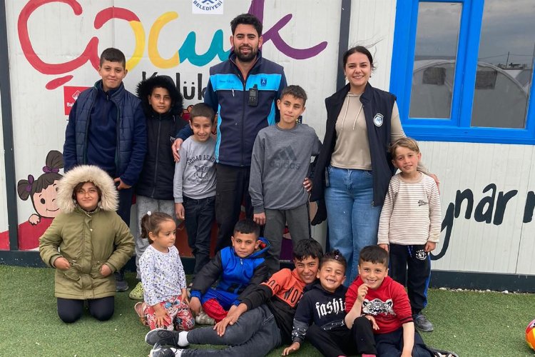 Belediye personelleri ve gönüllülerin yakından ilgilendiği aileleri ile birlikte kalan deprem mağduru çocuklar için de özel etkinlikler düzenleniyor.
