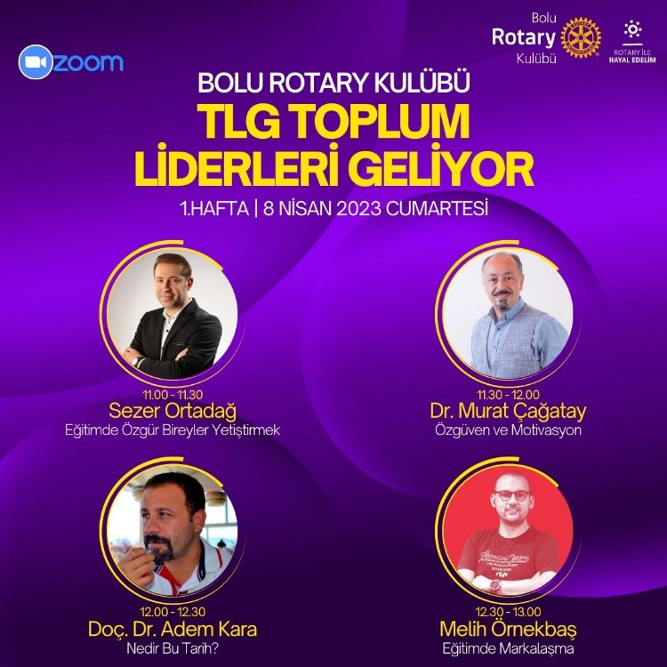 Bolu Rotary Kulübü bu yıl "Toplum Liderleri Geliyor" projesinin 12.'sini Zoom ekranları üzerinden çevrimiçi gerçekleştirecek.