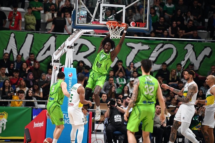 BURSA (İGFA) - Türkiye Sigorta Basketbol Süper Ligi 29. haftasında TOFAŞ, Frutti Extra Bursaspor’a konuk oldu. Nilüfer TOFAŞ Spor Salonu’nda oynanan maça Tyler Ennis, Milton Doyle, Berke Büyüktuncel, Brady Manek, Boubacar Toure beşiyle başlayan Mavi Yeşilliler, ilk basketini Milton Doyle’un üçlüğüyle buldu. Milton Doyle ve Boubacar Toure’nin sayılarıyla 8-8 eşitliği sağlayan konuk ekip, 5. dakikada televizyon molasına 10-8 geride girerken, mola dönüşü 7.30 da fark 7’ye (17-10) çıkınca bu kez Coach Orhun Ene’nin molası geldi. Moladan Rob Gray’in sayılarıyla dönerek skoru 17-14 yapan TOFAŞ, Brady Manek’in üçlüğü sonrası Rob Gray’in serbest atış sayılarıyla ilk çeyreği 20-19 geride kapattı.