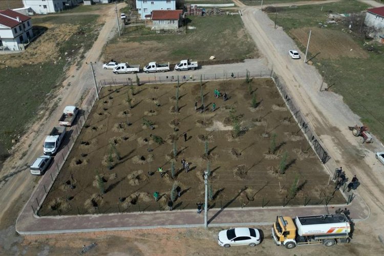 Bursa'da İnegöl Belediyesi, Orman Haftası etkinlikleri kapsamında Akhisar Mahallesi'nde oluşturulan korulukta 64 fidanı toprakla buluşturdu.