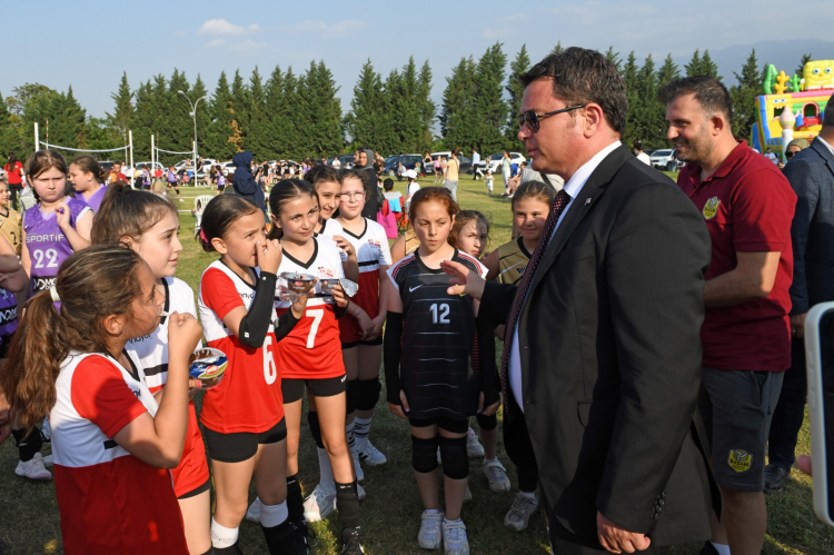 Osmangazi Belediye Başkanı Erkan Aydın, CHP Osmangazi İlçe Başkanı Raşit Gürbüz ve Osmangazi Belediyespor Kulübü Yönetim Kurulu Başkanı Fatih Karayılan ile birlikte Mini Voleybol Şenliği’nin açılışını yaparak minik sporcuların heyecanına ortak oldu. Türkiye’de bir ilki gerçekleştirdiklerini ifade eden Başkan Aydın, “10-12 yaş arasındaki kız çocuklarımız için Mini Voleybol Şenliği düzenledik. 12 tane mini voleybol sahası oluşturduk. 3 gün boyunca çocuklarımız burada voleybol maçları oynayacak. Sporun ne kadar güzel bir ortam sunduğunu, çocuklarımızın yüzlerindeki o neşede bir kez daha gördük. O enerji, o mutluluk bize de umut veriyor. Bizler istiyoruz ki; çocuklarımız birbirleriyle arasında dostluk bağı kursun, birbirini tanısın ve en önemlisi de bilgisayar ekranlarından uzaklaşarak sosyalleşsin, spor yapsınlar. Çocuk ve gençlerimizin sporla büyümesi, gelişmesi ve geleceğe hazırlanması için var gücümüzle çalışıyoruz. Bu tür organizasyonlarımız devam edecek. Futbol ve basketbol branşlarında da turnuvalar düzenleyeceğiz. Yelken kursları başlatacağız. Kadınından erkeğine, yaşlısından gencine kadar her kesimden insan için projeler üretip, Bursa’nın kalbi Osmangazi’yi daha ileriye taşıyacağız” dedi.