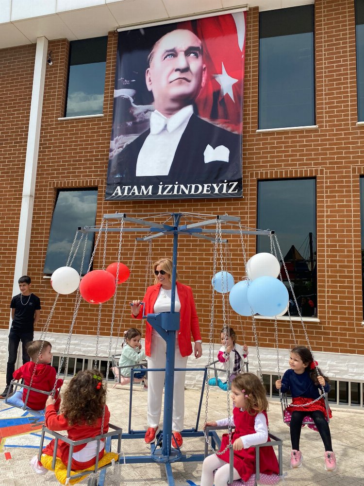 İki gün süren kutlamalar kapsamında çocuklar, okul bahçesine kurulan dönen salıncakta çok eğlenirken buuble show ile de kendilerini balonların içinde buldular. Miniklerin 23 Nisan konulu resim sergisini açtıkları etkinlik dizisi pamuk şeker keyifle devam etti.