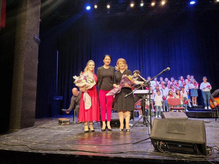 Orkestra Şube Müdür Vekili Nilüfer Göl konser sonunda Samiye Berkmen ve Cemile Kara Polat’a çiçeklerini takdim etti.