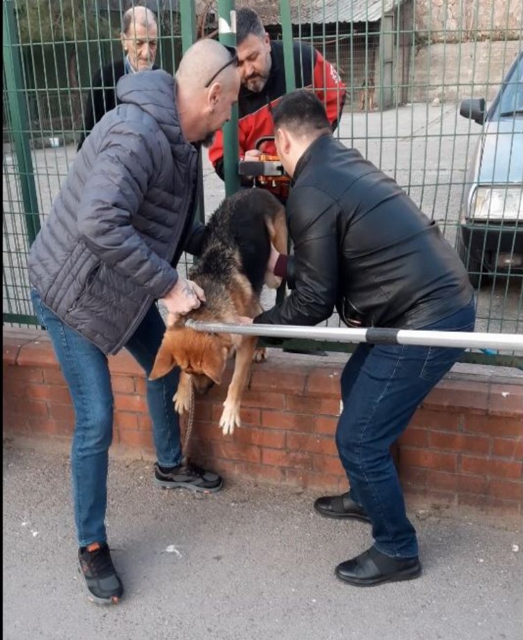 Alınan bilgiye göre, itfaiye ekipleri, İzmit ilçesi Kozluk Mahallesi'nde bir köpeğin demir çitlerin arasına sıkıştığı ihbarı ile harekete geçti.