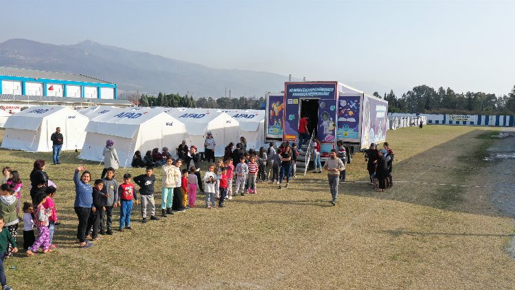 Depremzede çocuklar Konya Tır'ı ile moral buluyor