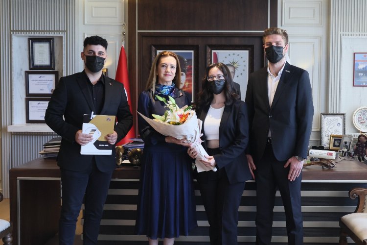 Yarışmada elde ettikleri dereceleri paylaşmak üzere DEÜ Rektörü Prof. Dr. Nükhet Hotar’ı ziyaret eden DEÜ İşletme Öğrenci Topluluğu’ndan Ayşenur Sumu, Hüseyin Akçalı ve Nusret Kılıç, destekleri için Rektör Hotar’a teşekkür ettiler.