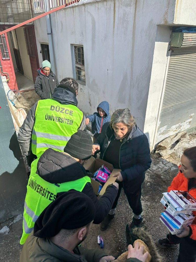 "Bir Destek de Sen Ol" yardım kampanyası başlatan ve halen devam ettiren Düzce Üniversitesi; kışlık kıyafet, battaniye, ısıtıcı, temizlik ve hijyen malzemeleri, bebek maması ile dayanıklı kuru bakliyat ürünleri başta olmak üzere iki TIR ihtiyaç malzemesi, üç TIR yakacak odun ve bir TIR suyun bölgeye ulaşmasına destek oldu. Ayrıca Düzce Üniversitesi Akçakoca Turizm İşletmeciliği ve Otelcilik Yüksek okulu, Gastronomi ve Mutfak Sanatları Bölümü, uzun süre bayatlamayan poğaça, kek ve kurabiye üreterek afet bölgesine gönderdi.