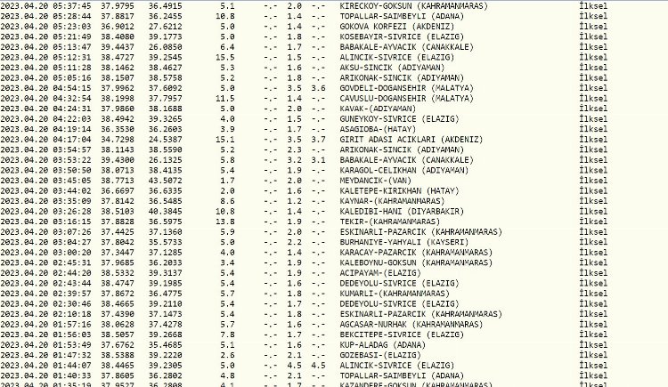 Öte yandan, Kahramanmara başta olmak üzere Türkiye'nin birçok ilinde irili ufaklı sarsıntılar meydana geldi.