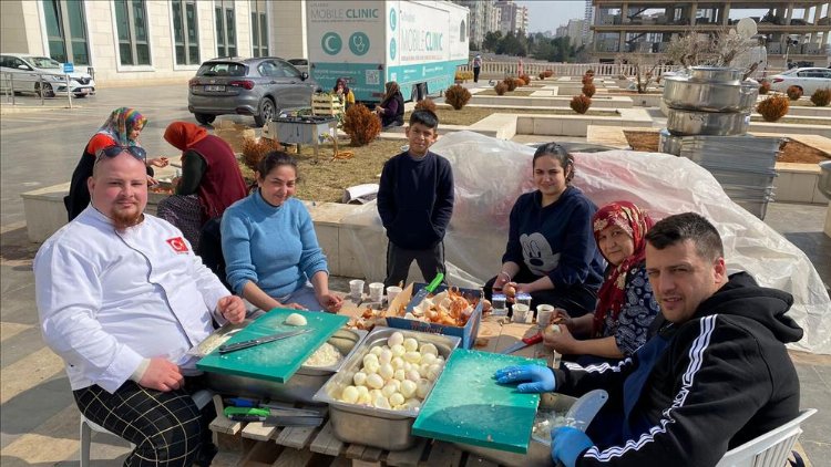 Deprem sonrası Bursa'dan bölgeye gönderilen İnegöl Belediyesi Yemek Tırı, Kahramanmaraş Onikişubat ilçesinde günlük 11 bin kişilik sıcak yemek dağıtımı yapıyor.
