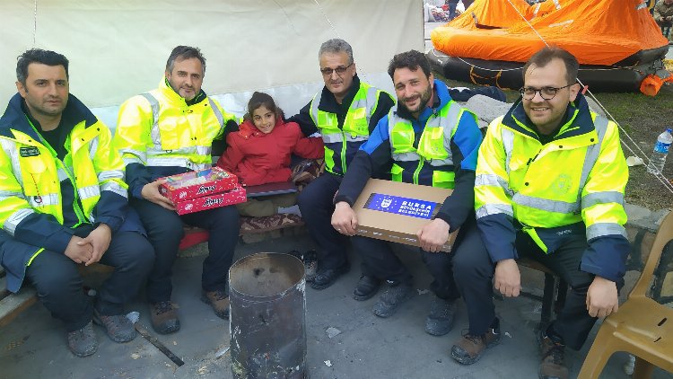 Hatay'da deprem mağduru vatandaşların yaralarını sarmak için mahalle mahalle gezerek yardımlarını ulaştıran Bursa Büyükşehir Belediyesi ekipleri, depremzede miniklerin yüzünü güldürmeye devam ediyor.