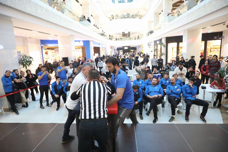 SAKARYA (İGFA) - Amatör sporseverlerin ve profesyonel sporcuların katıldığı bilek güreşi turnuvası alışveriş merkezi ziyaretçilerinin dikkati çekti.