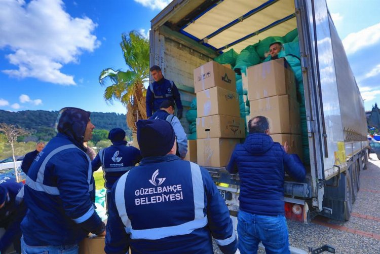 İzmir'de Güzelbahçe Kaymakamlığı ve Güzelbahçe Belediyesi’nin yaptığı çağrıyla vatandaşların topladığı yardım malzemeleri,1 tır ve2 kamyona yüklenerek yola çıktı.