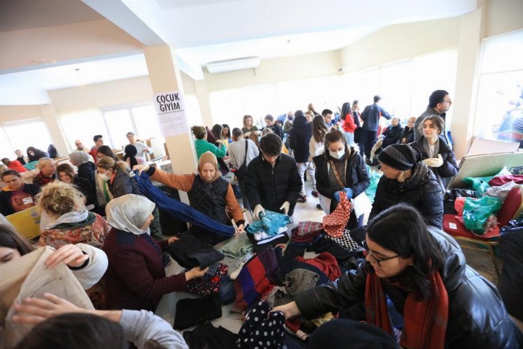 İZMİR (İGFA) - Kahramanmaraş'ta meydana gelen 10 il ve onlarca ilçede yıkıma ve can kayıplarına neden olan depremlerin ardından Güzelbahçe’de yardımlar çığ gibi büyümeye devam ediyor. Belediye ve kaymakamlıktan yapılan açıklamanın ardından akın akın gelen yardımlar belediye, kaymakamlık ekipleri ve gönüllü vatandaşlar tarafından ayrıştırılıp kolileyip araçlara bindiriliyor.