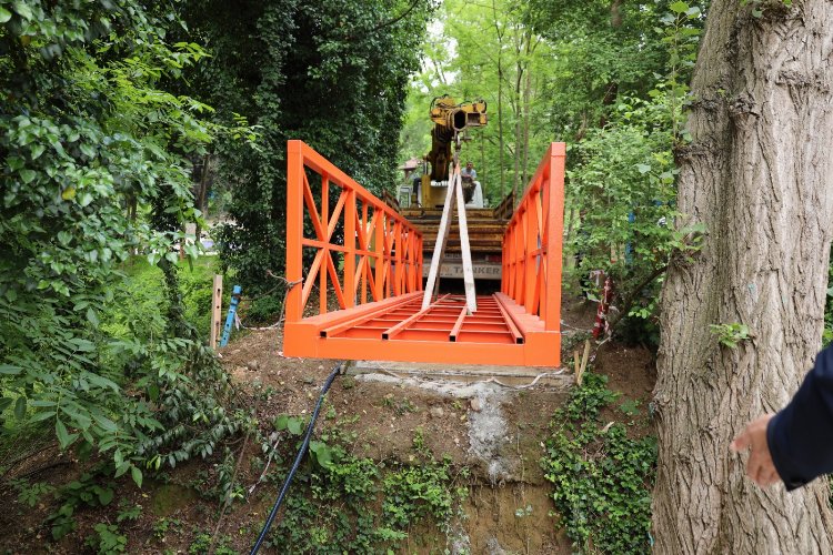 İzmit Belediyesi atölyelerinde ürettiği köprüyü Cephanelik Mesire Alanı’na yerleştirdi.
