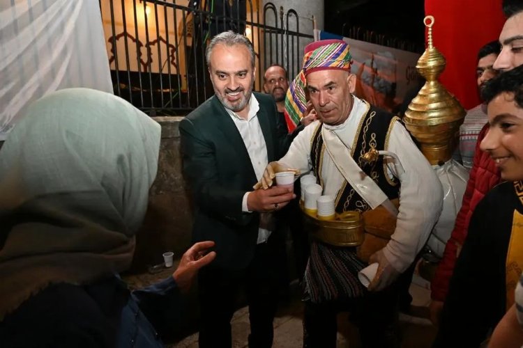 Programda Bursa Büyükşehir Belediye Başkanı Alinur Aktaş, vatandaşlara Destimal-i Şerif örtüsü hediye ederek helva ve şerbet ikramında bulundu.