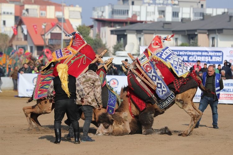 Deve güreşleri nefes kesti
