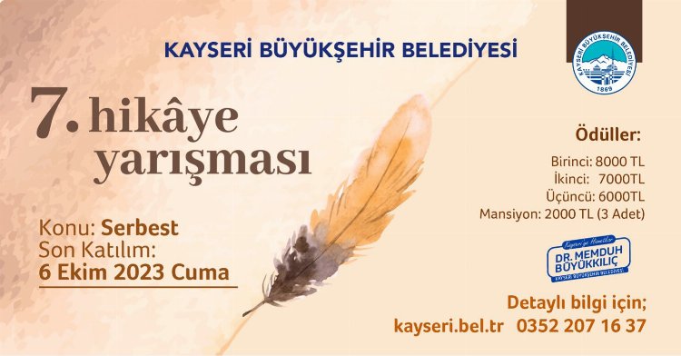 Kayseri Büyükşehir Belediyesi, Başkan Dr. Memduh Büyükkılıç’ın liderliğinde sürdürdüğü kültür sanat faaliyetlerine aralıksız devam ediyor. Bu kapsamda her sene düzenlenen ve yoğun ilgi gören hikâye yarışmasının 7’ncisi gerçekleştiriliyor.