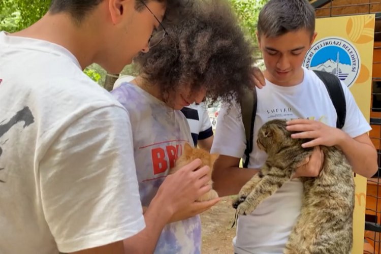 Melikgazi Belediyesi parklara sokak kedileri için kedi evleri yaptı.