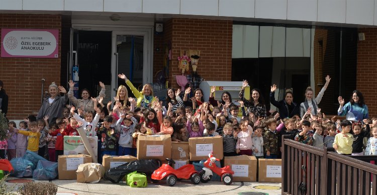 Bursa'da Özel Egeberk Anaokulu öğrencileri, depremzede çocuklar için oyuncak seferberliği başlattı. Minik yürekler, okulda toplanan oyuncakları deprem bölgesindeki kardeşlerine gönderdi.
