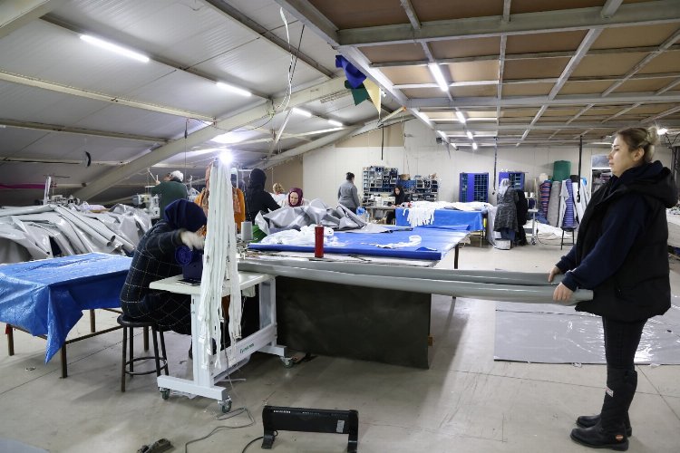 Ayrıca hayırseverlerle birlikte hareket eden KO-MEK kursiyerleri ve usta öğreticileri çadır dikiminde de bizzat yer alarak afet bölgesine gönderilecek çadırların dikimini de elleriyle gerçekleştirdi. Özenle ölçülüp biçilerek dikilen çadırlar SEKA Kaynak Atölyesinde kaynak yapılarak iskeleti oluşturulan çadır ayakları ile birlikte depremzedelerin barınma ihtiyacını karşılamak için deprem bölgesine gönderilecek.