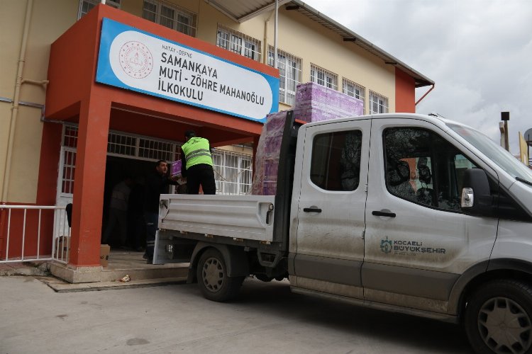 Deprem bölgesi Defne’de üs kuran Kocaeli Büyükşehir Belediyesi, oluşturduğu lojistik merkezinden her gün afetzedelere ihtiyaç malzemelerinin sevkiyatını sağlıyor.