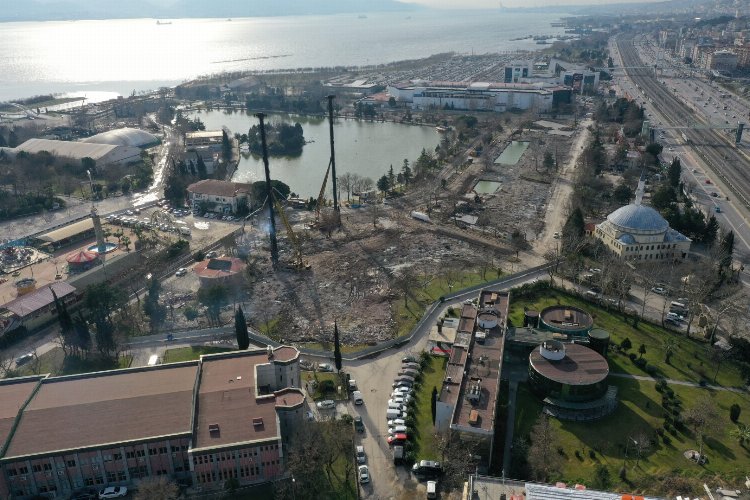 Eski yapıların kaldırıldığı Kocaeli Fuarı’nda zemin güçlendirilmesi için fore kazık imalatları yapıldı.