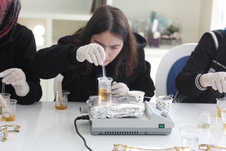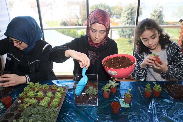 Atölyelerde kadınlara, Kocaeli Bilim Merkezi eğitmenleri teraryum ve doğal krem yapmayı öğretti.