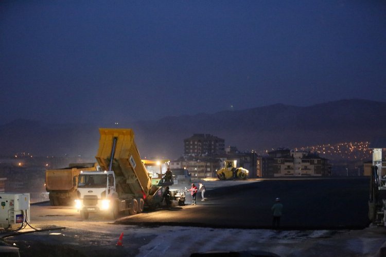 Kocaeli Büyükşehir Belediyesi'nin Hatay Defne’de kurduğu hastaneye ulaşımın sağlanacağı çevre yolu ve otopark alanı gece boyunca süren çalışmalarla asfaltlandı
