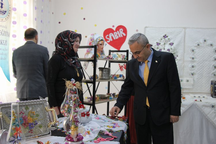 Kütahya Belediye Başkanı Prof. Dr. Alim Işık, Andız Mahallesi İğne Oyası kursiyerlerinin ürünlerinin yer aldığı serginin açılışını gerçekleştirdi.
