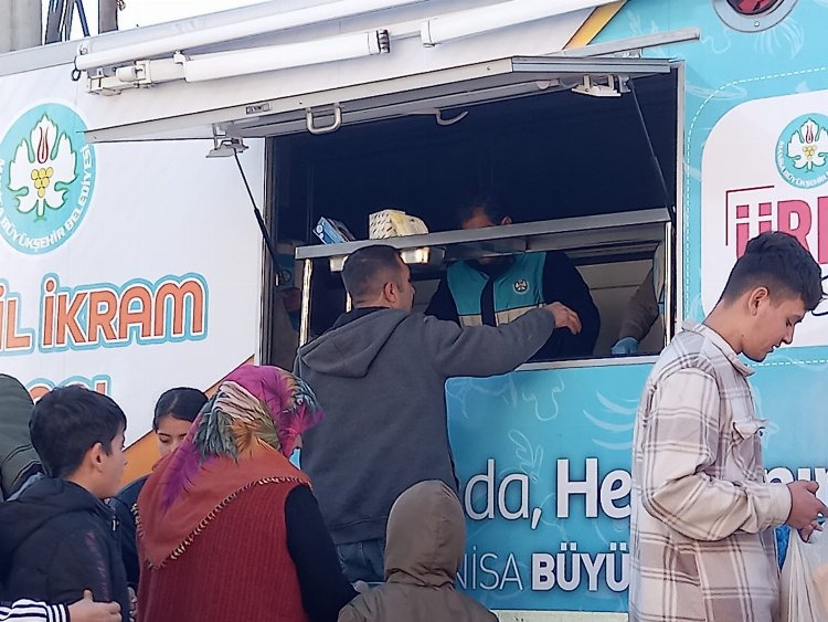 Deprem bölgesinde yaraları sarmaya devam eden Manisa Büyükşehir Belediyesi, Dulkadiroğlu ilçesi Sümer, İstasyon ve Aksu mahallelerinde depremzedelere iftar yemeği ve sahur kahvaltısı dağıtımını sürdürüyor.