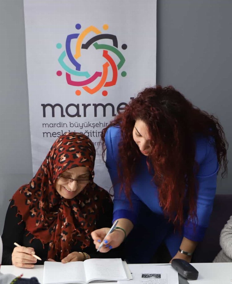 Mardin Büyükşehir Belediyesi Kültür Turizm ve Sosyal İşler Daire Başkanlığına bağlı Mesleki Eğitim Merkezinde (MARMEK) her yaştan kadınlar okuma yazma kurslarına katılım sağlayarak okuma yazma öğrenebiliyor.