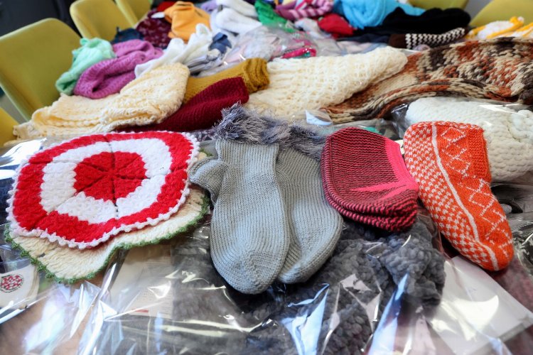 Mardin Büyükşehir Belediyesi'ne bağlı MARMEK, kentte gelen depremzedeler için atkı, bere ve patik örüyor.