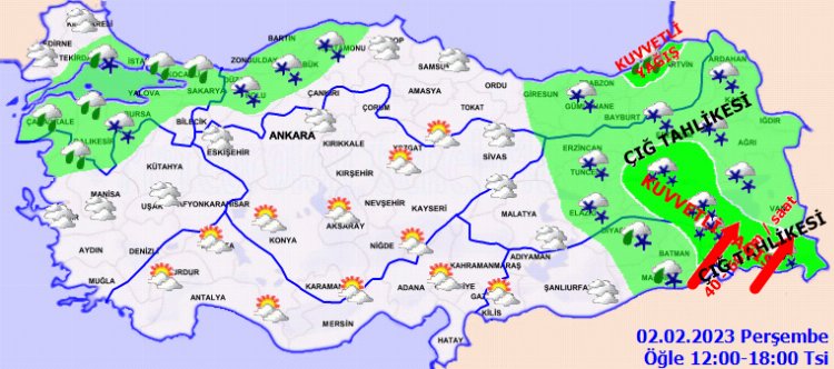 Meteoroloji, ülkenin doğusunda yoğun kar yağışlarıyla birlikte ulaşımda, aksamalar, buzlanma ve don, çığ tehlikesi, kuvvetli rüzgarla birlikte tipi gibi olumsuzluklara karşı dikkatli ve tedbirli olunması uyarısında bulundu.