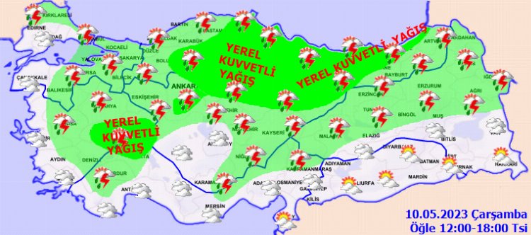 Parçalı ve çok bulutlu, Batı Akdeniz'in iç kesimleri, Kahramanmaraş çevreleri ile Mersin ve Adana’nın kuzey kesimlerinin yerel olmak üzere sağanak ve gök gürültülü sağanak yağışlı geçeceği tahmin ediliyor. Yağışların, öğle saatlerinde Isparta çevrelerinde yer yer kuvvetli olması bekleniyor.