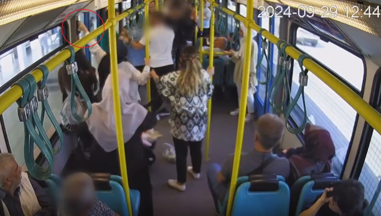 Bebek pusetinin başında ayakta duran 2 kadın, tekme ve yumruk darbesi ihtimaline karşı, kendilerini bebeğe siper ederken, oturan kadın yolculardan birinin uyarısıyla ayaktaki kadınlardan biri acil durumlar için kullanılması gereken, ‘imdat freni’ni çekti.