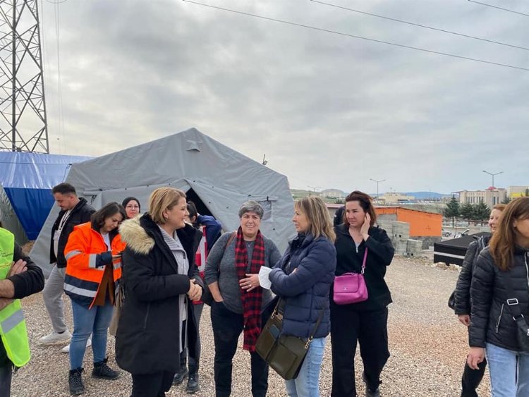 İzmit Belediye Başkanı Fatma Kaplan Hürriyet, TKDF ve Boyner Holding işbirliği ile Kahramanmaraş’ta kurulan Mor Yerleşke çalışmalarını incelemek üzere yeniden deprem bölgesine gitti