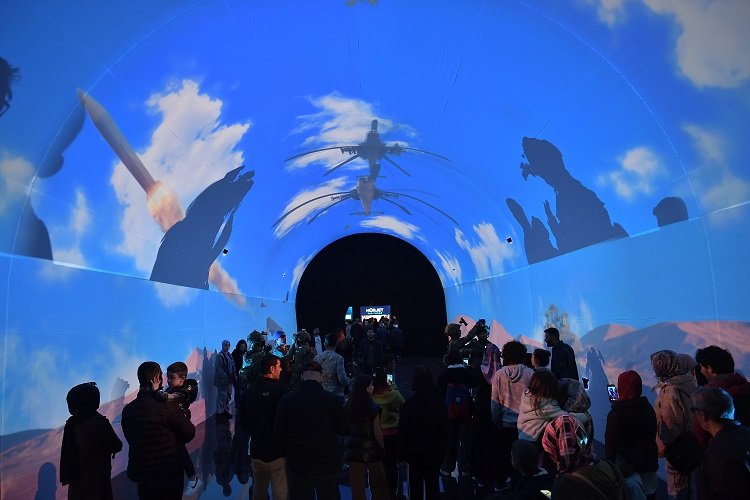 Dijital tünelde Milli Muharip Uçak (MMU), TCG Anadolu SİHA Savaş Gemisi, Atak Helikopteri ve Altay tankı gibi projelere ait görüntüler muhteşem görsel şovlarla sunuluyor.